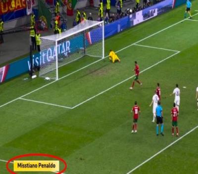 此前欧洲杯对阵,葡萄牙点球大战3-0淘汰斯洛文尼亚,本场比赛C罗在加时赛中罚丢点球。BBC体育在回放这一镜头时字幕打出Misstiano Penaldo(丢里斯蒂亚诺-点纳尔多),此事引起巨大争议。