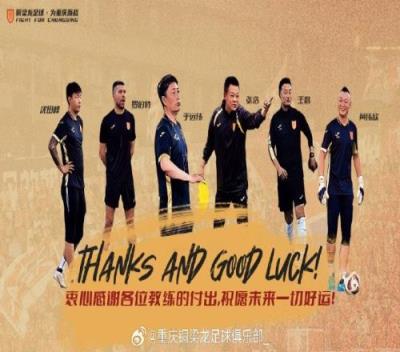 随后,重庆铜梁龙官方宣布,于远伟、张浩、沈田峰、王锴、罗伯特、黄伟欣六位教练离任。俱乐部官方公告写道: