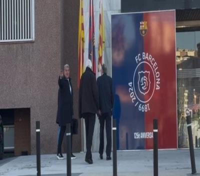 记者表示:“拉波尔塔在早上10点抵达诺坎普办公室,满面笑容。今天是奥尔莫去留的关键日子,西甲将在今晚23点59分之前决定奥尔莫是否能继续注册。”