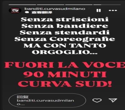 在早些时候有媒体报道称,米兰南看台死忠球迷组织将会在米兰德比中用沉默来抗议俱乐部高层,将不会在比赛中以任何形式支持米兰。