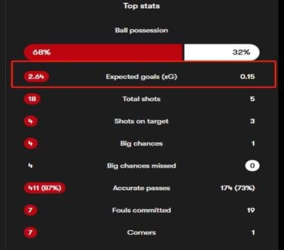 踢成11!阿森纳90分钟预期进球2.64个,曼联仅为0.15个