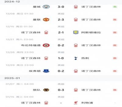 下轮对阵利物浦!诺丁汉森林完成英超6连胜,且连续4场零封