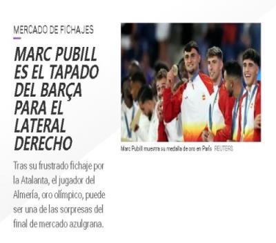 西媒表示,巴萨虽受公平竞赛规则限制,仍积极寻求引援。21岁的阿尔梅里亚右后卫马克-普比尔成为巴萨的目标。