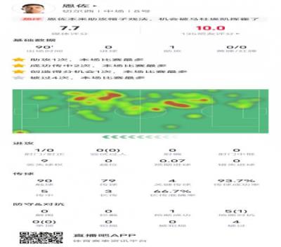 恩佐本场比赛具体数据如下: