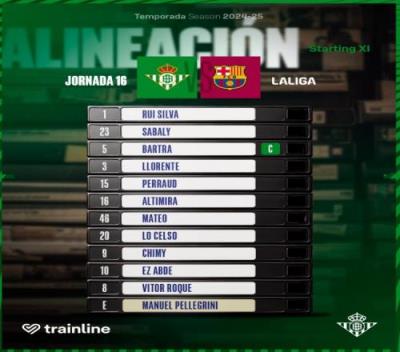 体育资讯12月7日报道宣称 西甲第16轮,巴萨客战贝蒂斯的比赛即将打响。赛前,贝蒂斯变更首发,一门鲁伊-席尔瓦因伤退出首发。