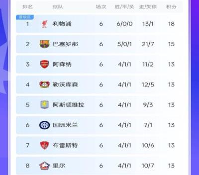 体育资讯12月12日报道宣称 新赛制欧冠6轮比赛战罢,目前的晋级形式越来越焦灼,晋级区与附加区差距仅有1分。