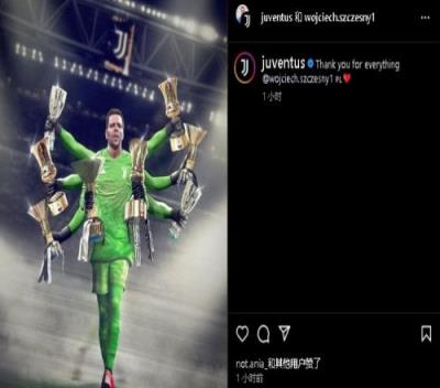 什琴斯尼在社媒晒出手捧多个奖杯的照片,告别尤文。尤文社媒评论:感谢你所做的一切。