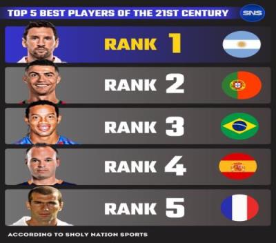 体育资讯7月28日报道宣称 日前,外媒评选了21世纪十大球星,梅西、C罗位居前二,罗纳尔迪尼奥第三。