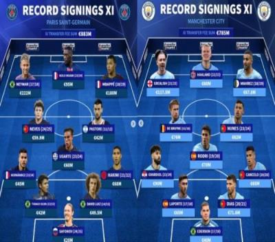 体育资讯1月23日报道宣称 巴黎和曼城在今晚欧冠焦点战迎来强强对话,《转会市场》也列出了两队队史引援最贵阵。