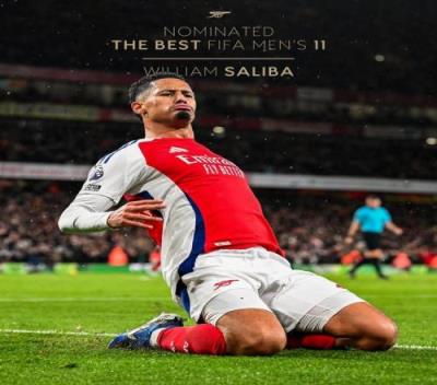 体育资讯12月18日报道宣称 FIFA今日官宣年度最佳阵容,阿森纳中卫威廉-萨利巴入围。