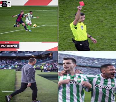 在巴萨2-2贝蒂斯的比赛第66分钟,德容撞倒罗克后主裁判罚点球,弗里克因抗议判罚被红牌罚下。官方文件显示,弗里克违反了纪律守则第127条,对主裁、助理裁判或者第四官员抗议。