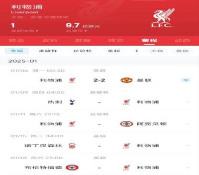 体育资讯01月06日报道宣称 利物浦在今天凌晨的英超2-2战平曼联,斯洛特的球队结束连胜但仍保持不败。