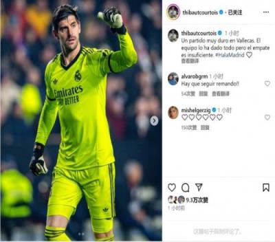 库尔图瓦在社交媒体上晒出比赛照片,并写道:“在巴列卡斯的一场非常艰难的比赛,球队已经竭尽全力,但平局是不够的。”