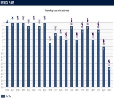 体育资讯12月31日报道宣称 英超创立以来,曼联在弗格森执教的21年里最低排名是英超第三位,弗格森退休后,曼联在英超的最低排名不断刷新,上赛季的第八是球队参加英超以来的最低排名。