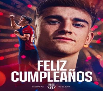 体育资讯8月5日报道宣 今天是西班牙中场加维的20岁生日,巴萨官推发文为他送上祝福。