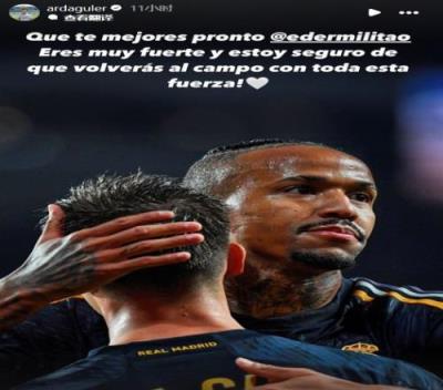 居勒尔更新社媒,祝福了米利唐:“早日康复,你很坚强。我我相信你会带着所有的力量回归的!”