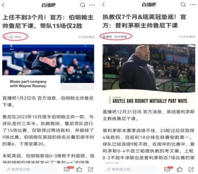 体育资讯12月31日报道宣称 带队仅半个赛季,英冠普利茅斯官宣主帅鲁尼下课。