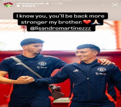 体育资讯2月3日报道宣称 英超第24轮,曼联不敌水晶宫。比赛中,利桑德罗-马丁内斯膝盖遭遇重伤,痛哭不止被担架抬离场。赛后,巴因德尔更新社媒,向利马送上安慰。