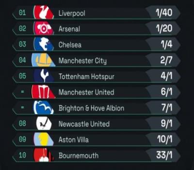 体育资讯12月6日报道宣称 英超第14轮,热刺0-1伯恩茅斯,热刺两轮不胜居第十。赛后,相关机构更新了最新的英超夺冠赔率。