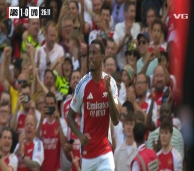 体育资讯8月11日报道宣 酋长杯阿森纳vs里昂。比赛第26分钟,阿森纳将比分扩大为2-0!又是角球机会,这次赖斯找到了加布里埃尔,后者头球直接飞进网窝。