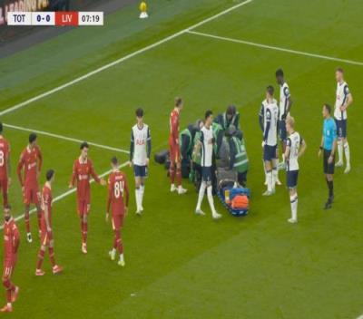 体育资讯01月09日报道宣称 利物浦vs热刺第7分钟,本坦库尔受伤倒地,双方球员都在招呼医务人员进场,转播没给具体的镜头。之后担架入场,医疗人员在场内处理。