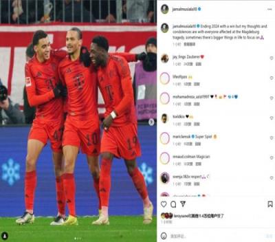 穆西亚拉社媒:以胜利结束2024年,但为马格德堡遇难者哀悼