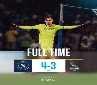 不过此后那不勒斯出场的3人都稳稳命中,而摩德纳的第3、第5点球手都罚丢,最终那不勒斯4-3惊险过关。