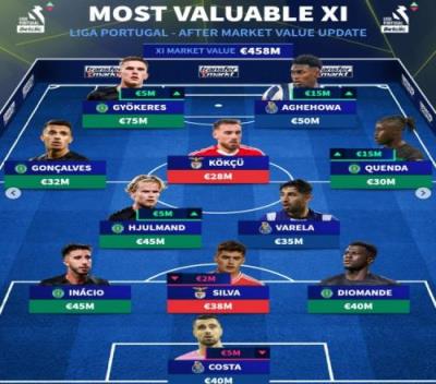 体育资讯12月20日报道宣称 《转会市场》更新了葡超球员身价,并列出了一套葡超最贵阵,葡体6将在列。