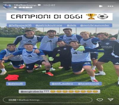 体育资讯1月6日报道宣称 科莫左后卫阿尔贝托-莫雷诺更新社媒动态,晒出团队训练后与阿里的合照。