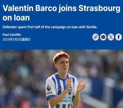 体育资讯2月2日报道宣称 布莱顿官方宣布,阿根廷边后卫瓦伦丁-巴尔科外租斯特拉斯堡半个赛季。